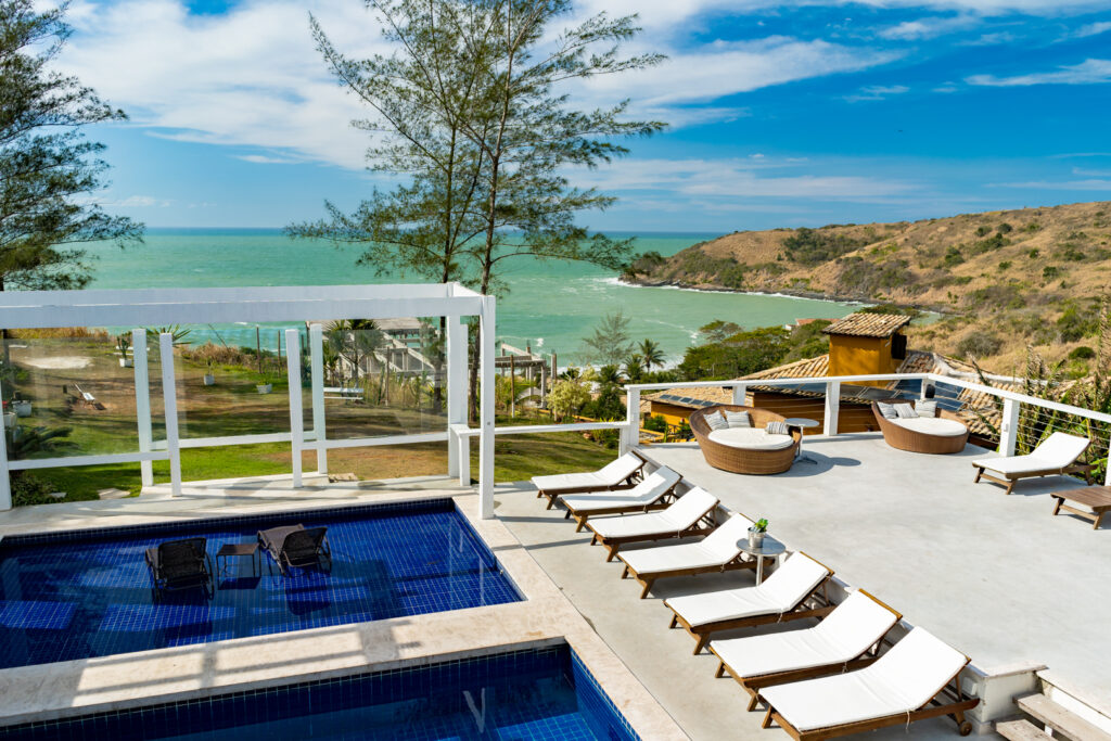 Um mergulho sereno com vista para o céu e o verde de Búzios. A água morna convida à pausa e à contemplação — uma verdadeira experiência mediterrânea.
